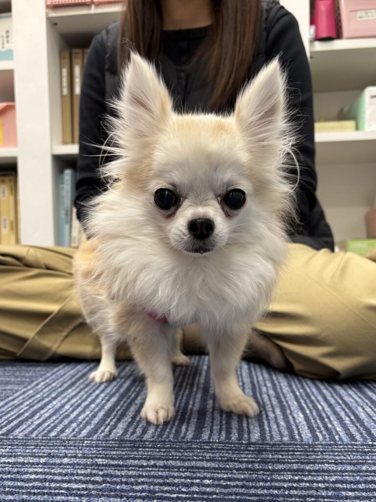 ルイ:14歳女の子のシニア犬。2018年ごろから毎日出勤しています。